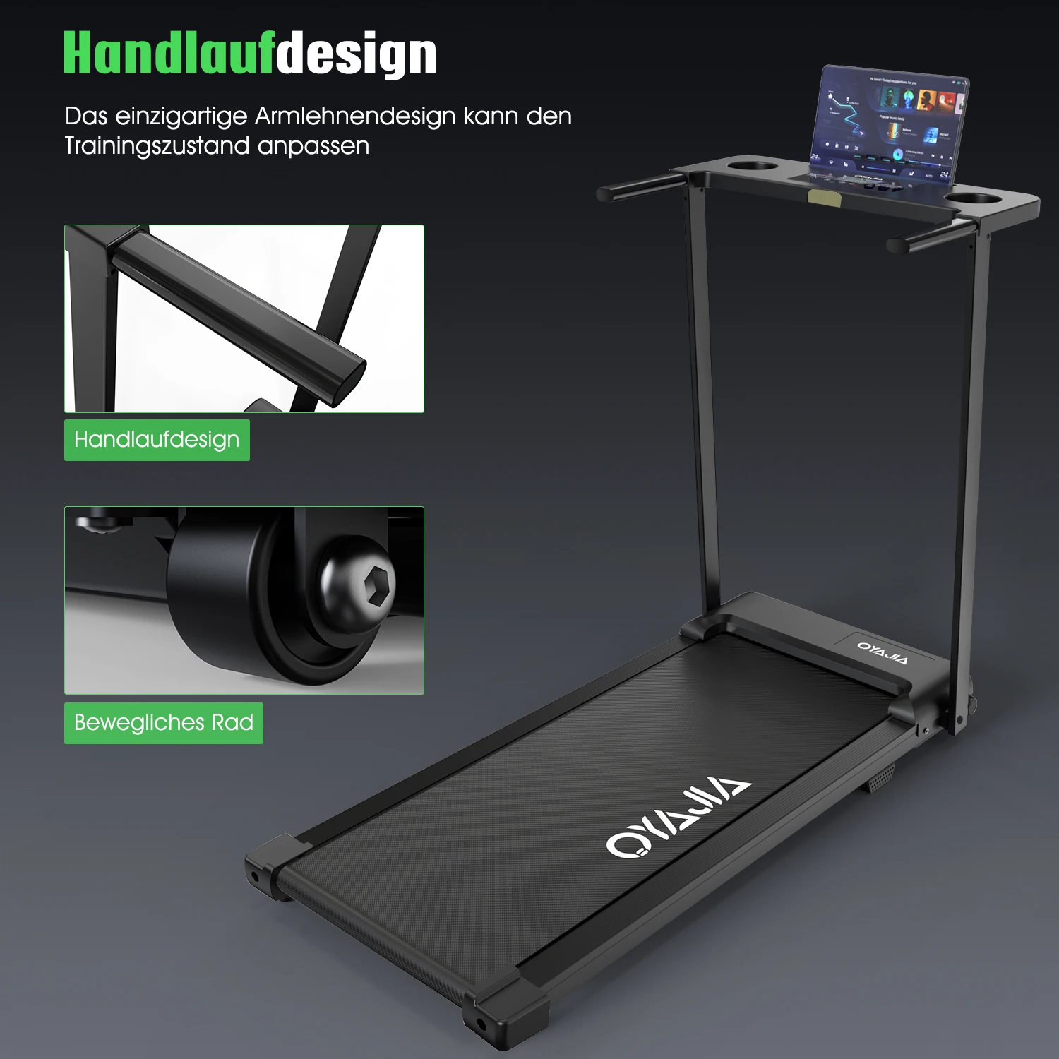 【Powerful Motor】 The OYAJIA portable treadmills for home powerful 2.5HP quiet motor provides a large carrying capacity of up to 264 LBS capacity,that reaches speeds of up to 12KM/H , with noise levels kept below 45 dB even at maximum power, saving energy while providing a serene workout atmosphere. This walking pad treadmill for home use allows you to enjoy your fitness journey without disturbing your family or neighbors.